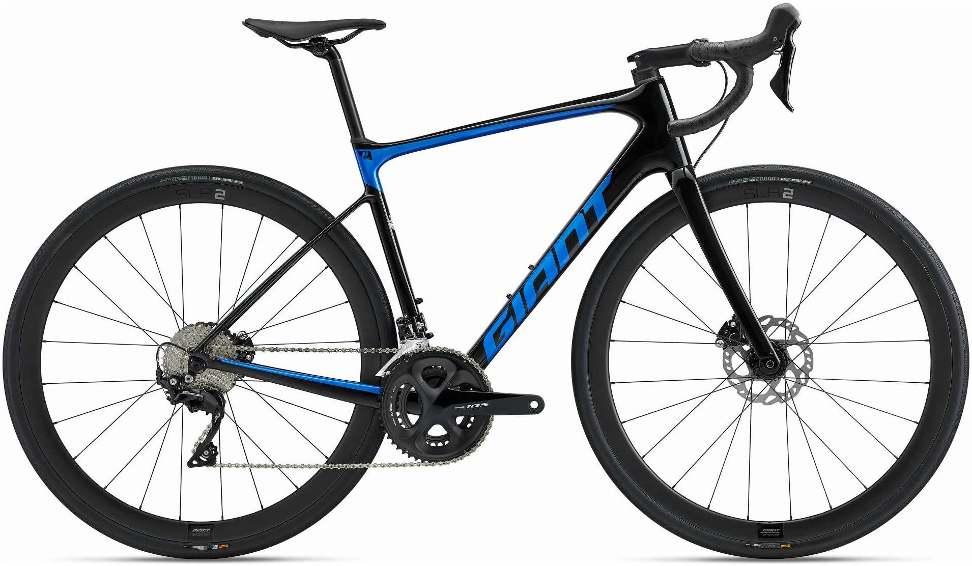 - Rims: Giant SLR 2 36 Carbon Disc Hookless WheelSystem (22mm Inner Rim Width)